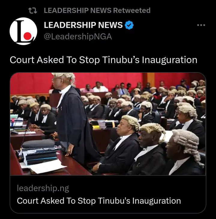 A new suit seeking to halt the inauguration of Asiwaju Bola Ahmed Tinubu as Nigeria’s new President on May 29, 2023, has been filed at the Court of Appeal in Abuja.